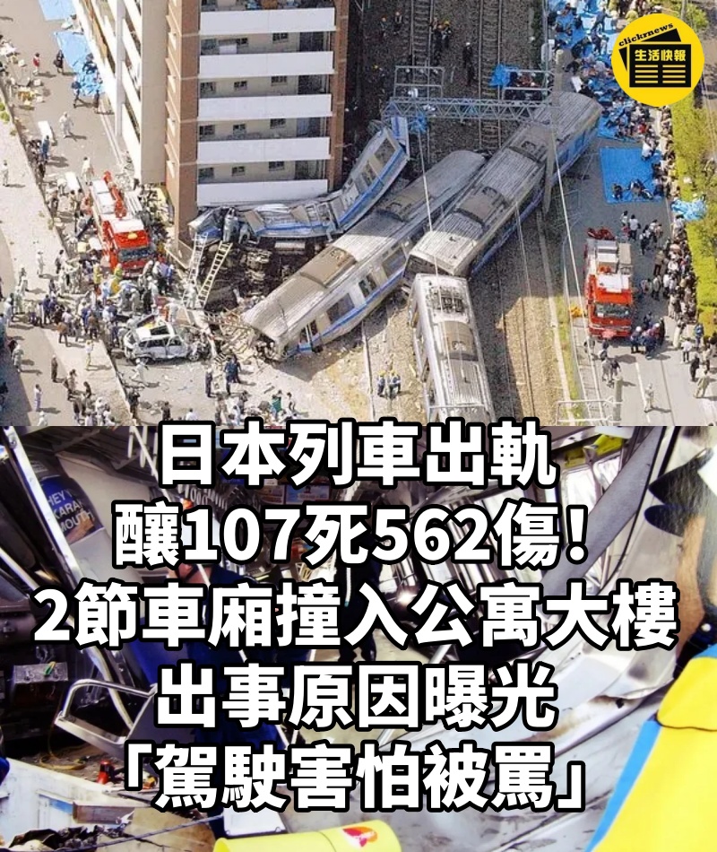 日本列車出軌釀107死562傷!2節車廂「撞入公寓大樓」 出事原因曝光「駕駛害怕被罵」
