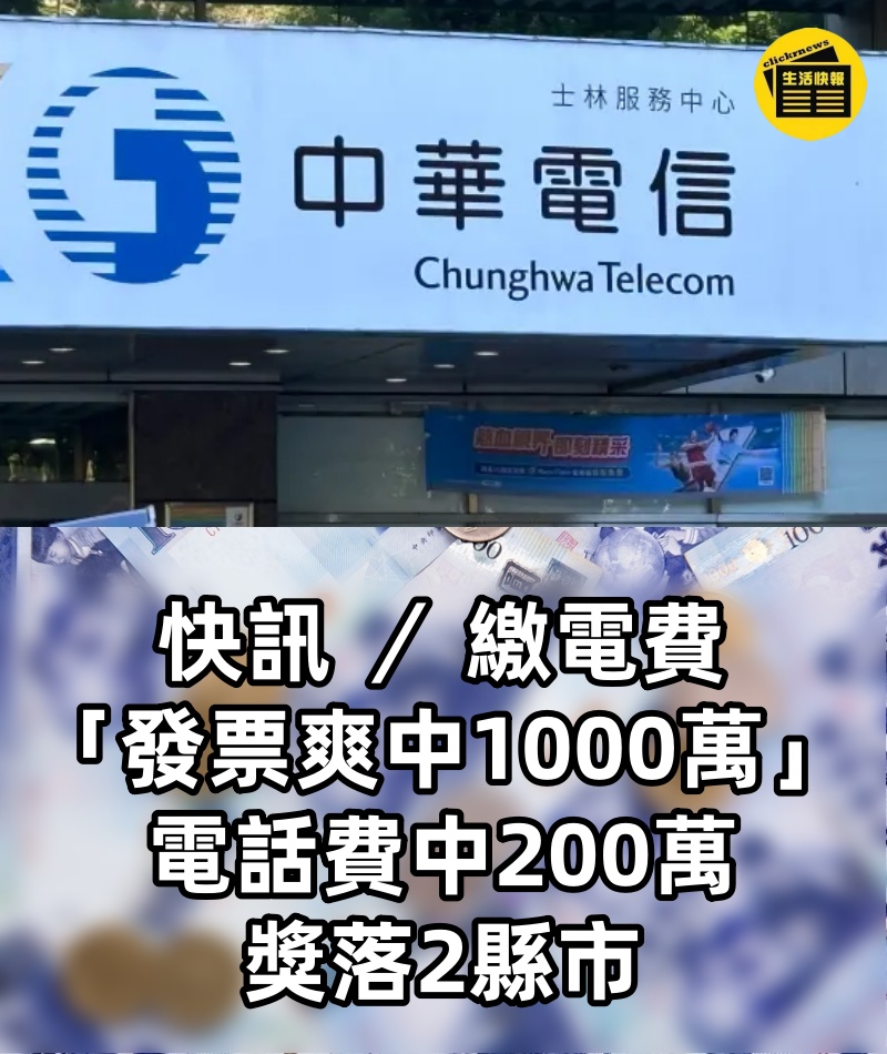 快訊 / 繳電費「發票爽中1000萬」電話費中200萬,獎落2縣市