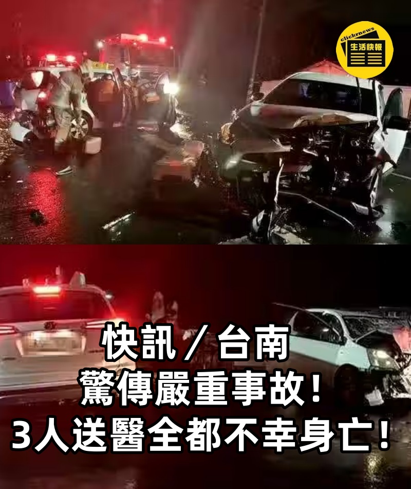 快訊/台南驚傳嚴重事故! 3人送醫「全都不幸身亡」!