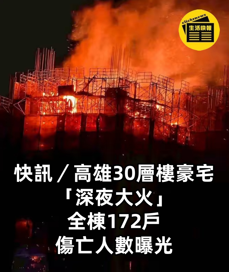 快訊/高雄30層樓豪宅「深夜大火」全棟172戶,傷亡人數曝光