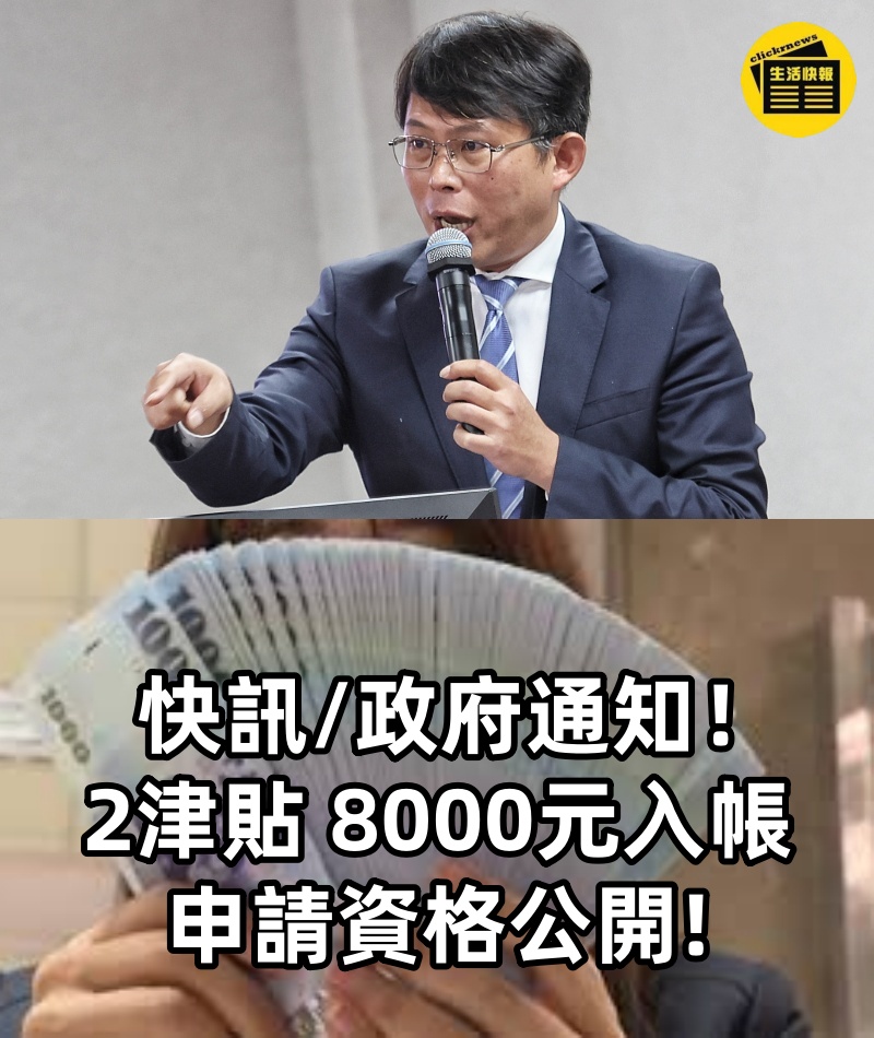 快訊/政府通知!2津貼 「8000元入帳」申請資格公開!