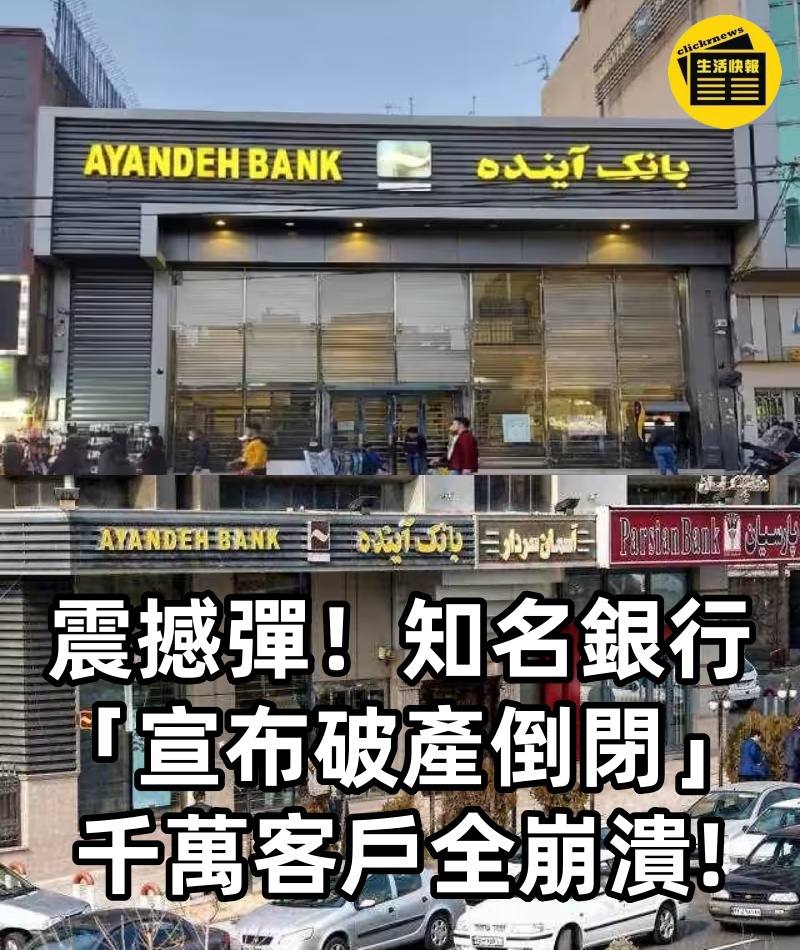 1/5 震撼彈!知名銀行「宣布破產倒閉」千萬客戶全崩潰 受到國際制裁的經濟壓力影響,伊朗政府日前罕見宣布該國規模最大的私人金融機構之一「未來銀行」(Ayandeh Bank)正式破產, 高達29億美元(約新台幣905億元)的龐大負債將交由國營銀行概括承受。 儘管經濟部