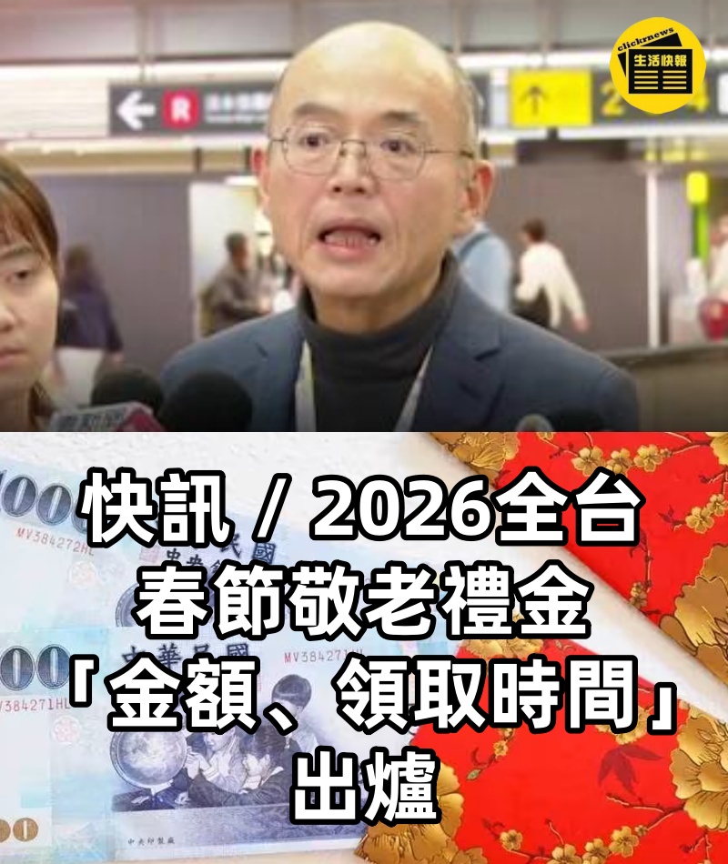 快訊 / 2026全台春節敬老禮金 「金額、領取時間」出爐