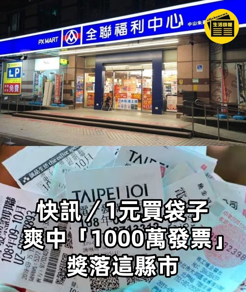 快訊/1元買袋子,爽中「1000萬發票」 獎落這縣市