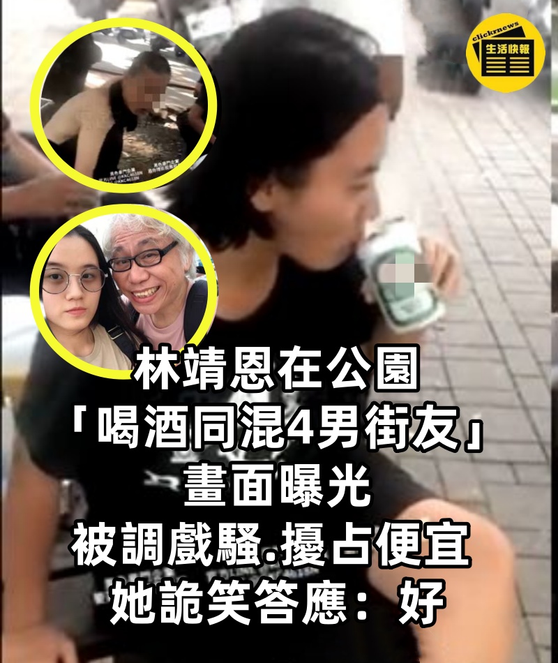 林靖恩在公園「喝酒同混4男街友」 畫面曝光 被調戲「騷.擾占便宜」 她詭笑答應:好