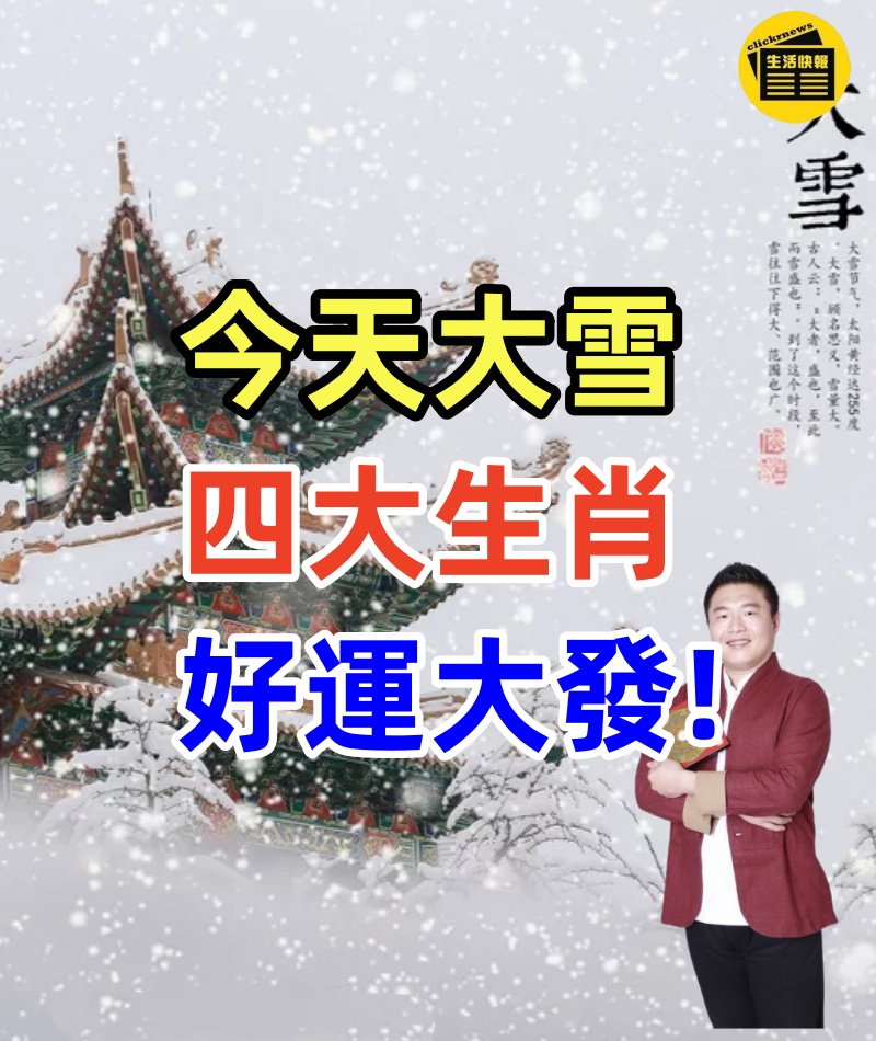 1/3 今天大雪 四生肖 好運大發 生肖鼠 屬鼠的朋友機靈聰慧,在大雪後將迎來一波新的運勢。 事業方面,屬鼠者有望得到貴人提攜,同時也可能會有許多公司拋出橄欖枝,只要能夠妥善運用自身智慧並隨機應變,勢必能走出一條屬於自己的康莊大道。 至於感情部分,屬鼠者可能將有意外驚喜,有