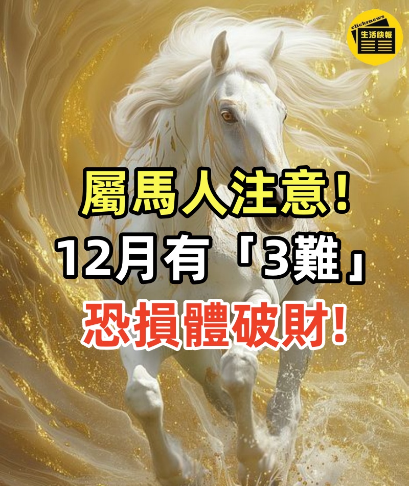 屬「馬」人注意!12月有「3難」恐損體破財,專家親授「3招保平安」