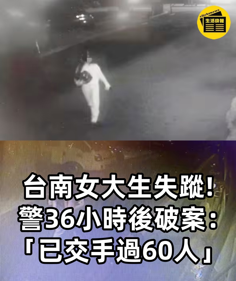 台南女大生失蹤!!! 警36小時後破案:「已交手過60人」