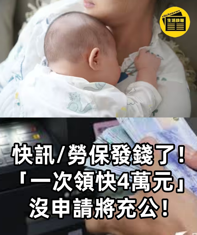 1/4 快訊/勞保發錢了!「一次領快4萬元」 沒申請將充公。 根據勞工保險局行事曆公告,近日將陸續發放多筆津貼,例如「國民年金保險生育給付」就是今天 (22) 入帳,符合資格者可一次領取約4萬元,而且5年內都能提出申請,媽媽們快來看如何辦理,別讓權益充公了。