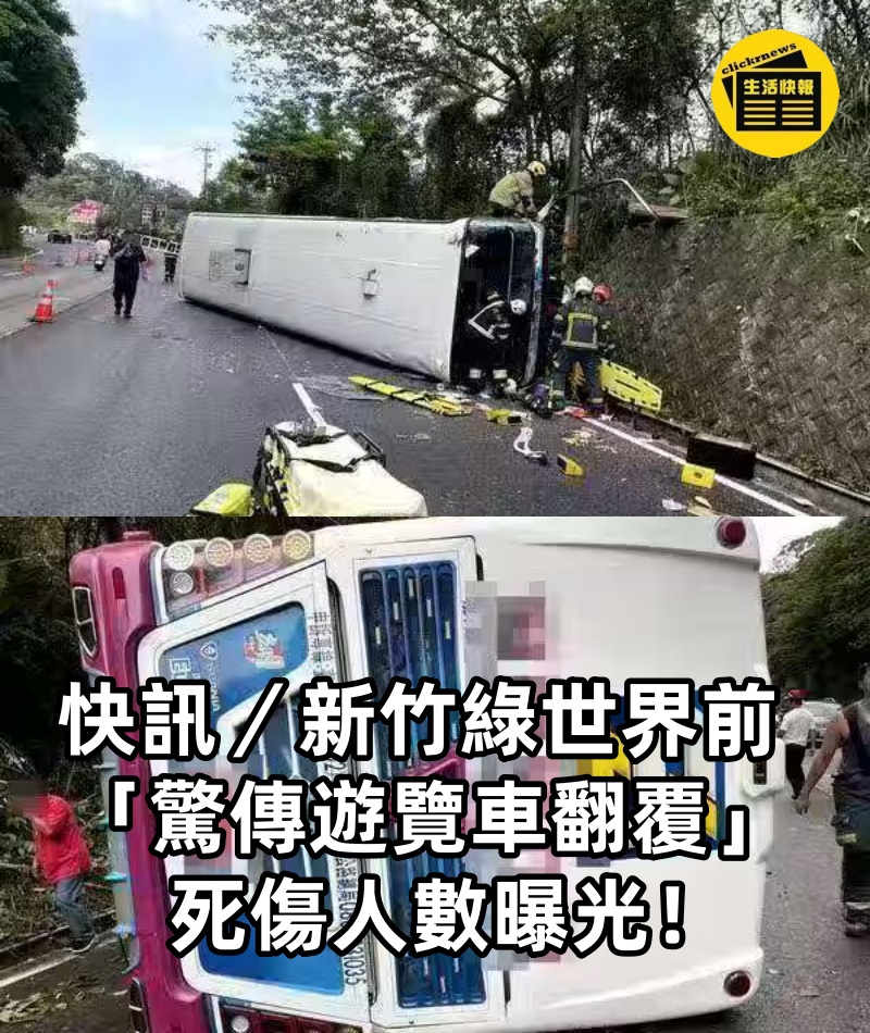 快訊/新竹綠世界前 「驚傳遊覽車翻覆」 死傷人數曝光!