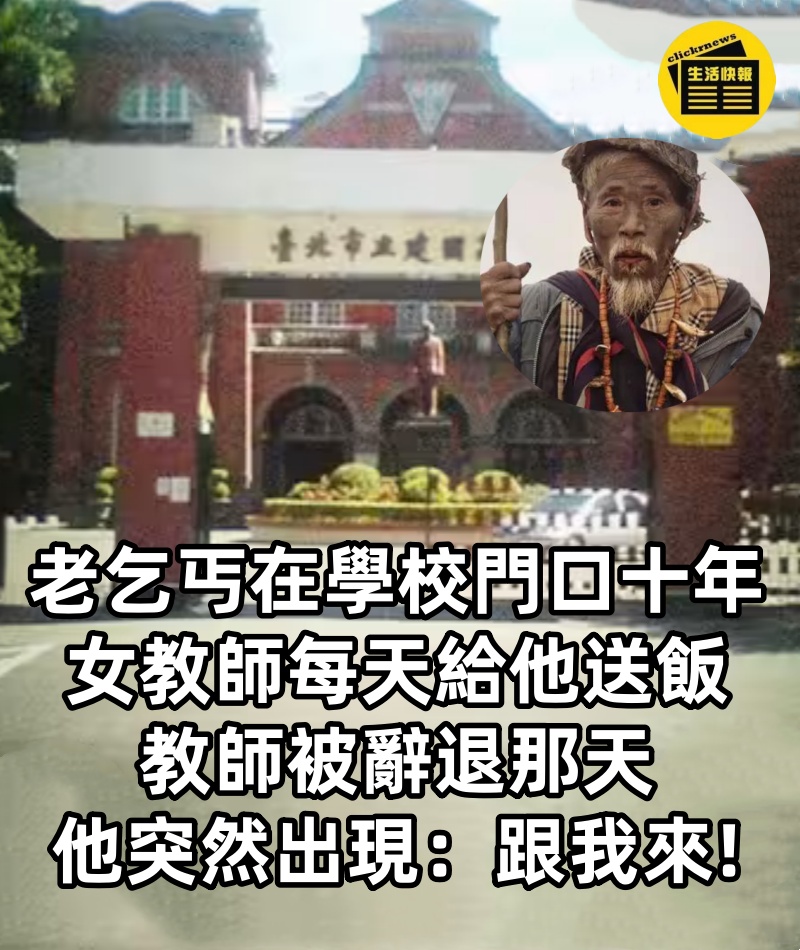 1/5 老乞丐在學校門口十年,女教師每天給他送飯,教師被辭退那天,他突然出現:跟我來 清晨冰冷如鐵,寒風裹挾著細碎的冰線撲面而來,台北城濟世中學門口的光鮮與侷促如同陰陽鏡面。 一邊是名牌加身的家長們步履匆匆地送孩子進學堂,另一邊卻只是沉默地如同影子般存在著的老乞丐。 他,幾乎