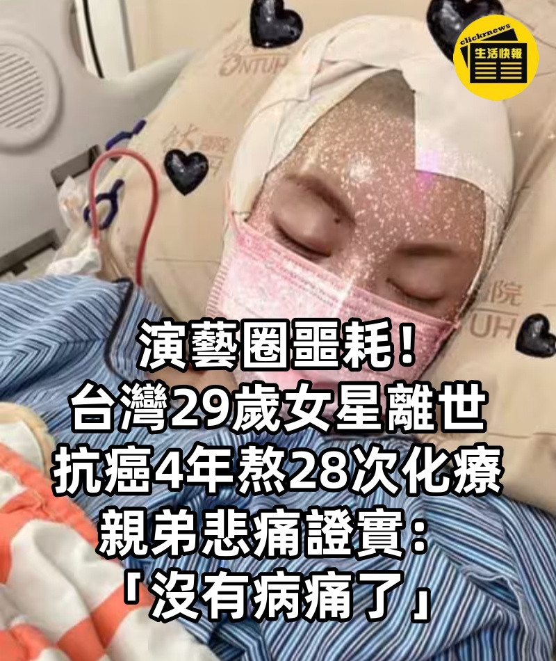 演藝圈噩耗!台灣29歲女星離世「抗癌4年」熬28次化療,親弟悲痛證實:「沒有病痛了」