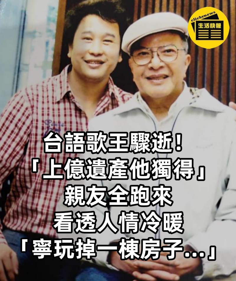 台語歌王驟逝!「上億遺產他獨得」親友全跑來,看透人情冷暖「寧玩掉一棟房子...」