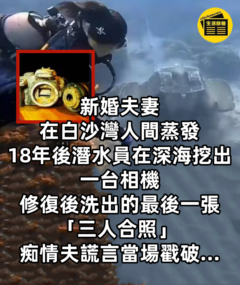 新婚夫妻在白沙灣人間蒸發,18年後潛水員在深海挖出一台相機,修復後洗出的最後一張「三人合照」 痴情夫謊言當場戳破...