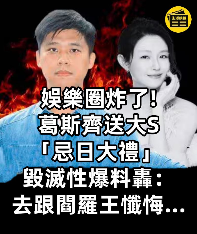 娛樂圈炸了!!! 葛斯齊送大S「忌日大禮」 毀滅性爆料轟: 去跟閻羅王懺悔…