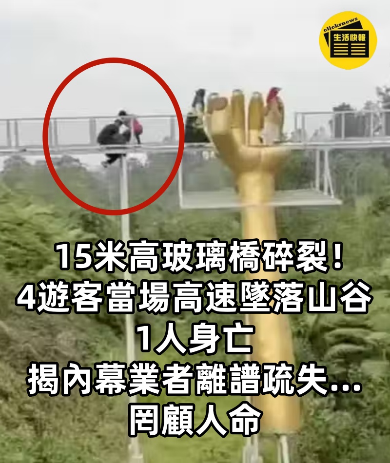 15米高玻璃橋碎裂!4遊客「當場高速墜落山谷」1人身亡 揭內幕「業者離譜疏失...」:罔顧人命