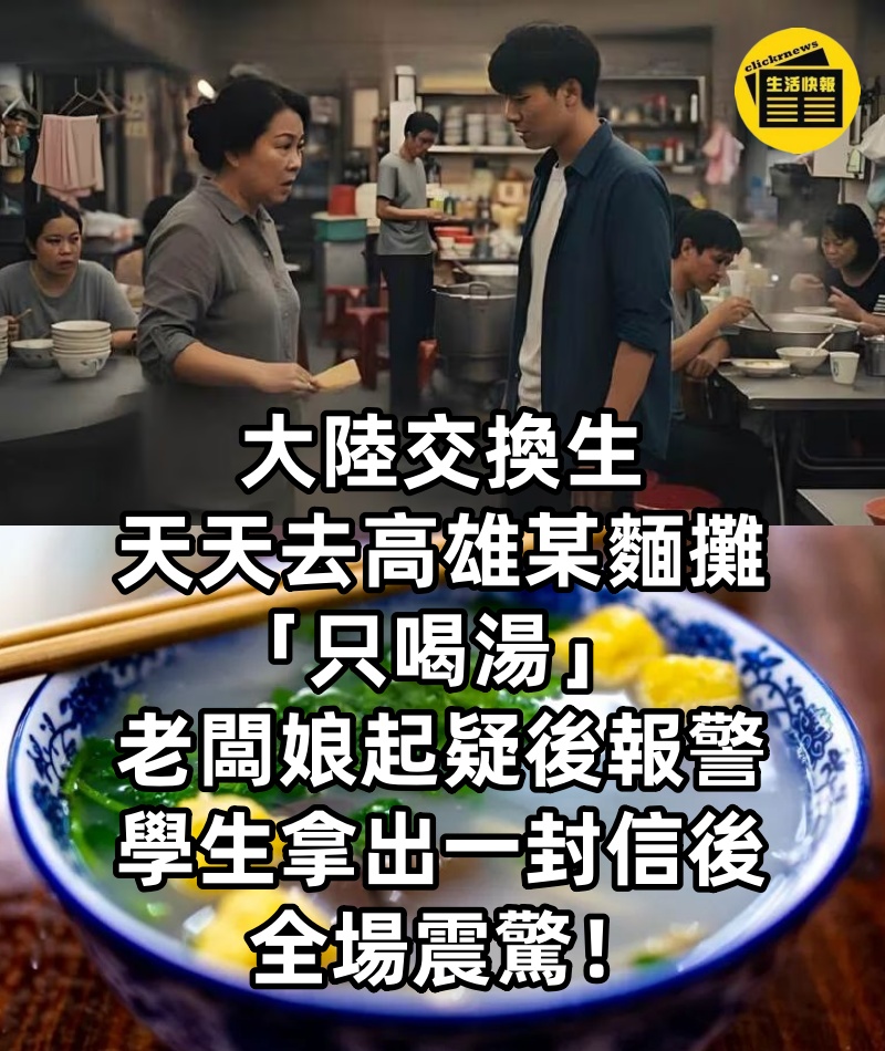 大陸交換生天天去高雄某麵攤「只喝湯」 老闆娘起疑後報警, 學生拿出一封信後全場震驚