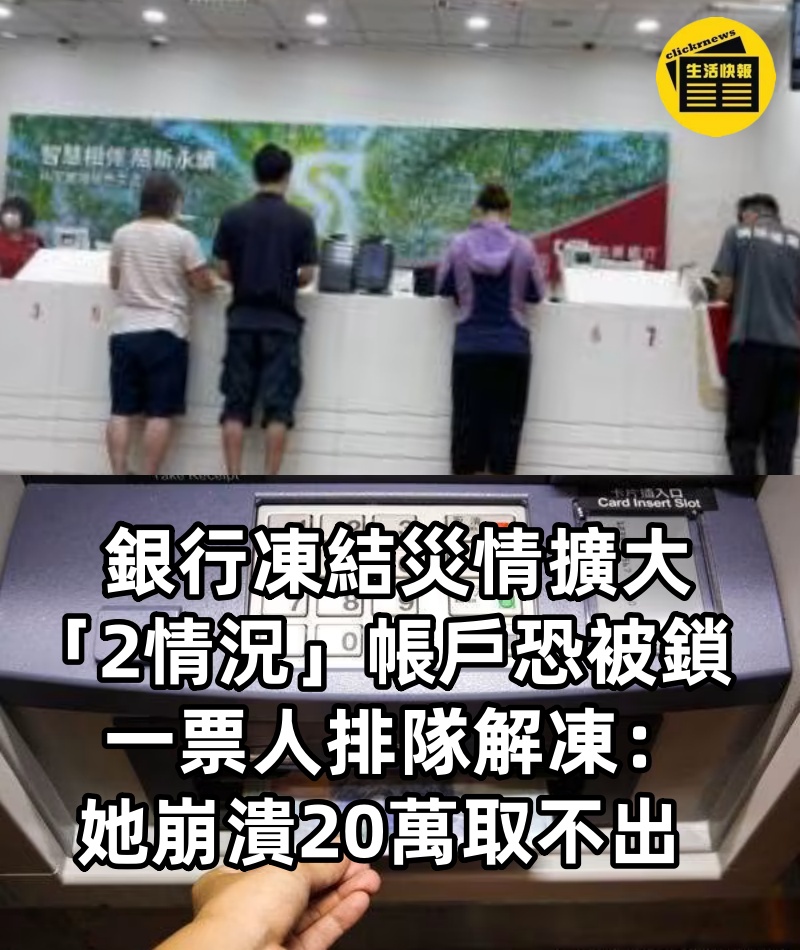銀行凍結災情擴大!!! 「2情況」帳戶恐被鎖,一票人排隊解凍:她崩潰20萬取不出