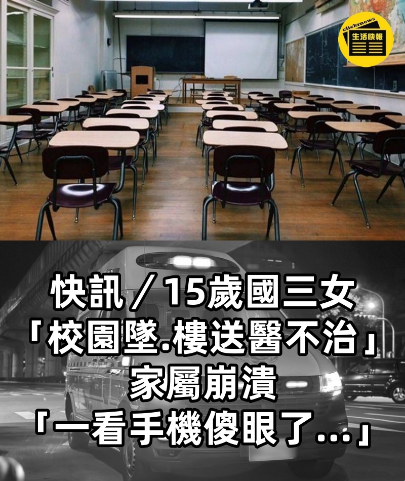 快訊/15歲國三女「校園墜.樓送醫不治」 家屬崩潰「一看手機傻眼了…」