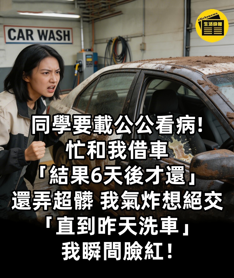 同學要載公公看病!!! 忙和我借車「結果6天後才還」還弄超髒 我氣炸想絕交「直到昨天洗車」我瞬間臉紅