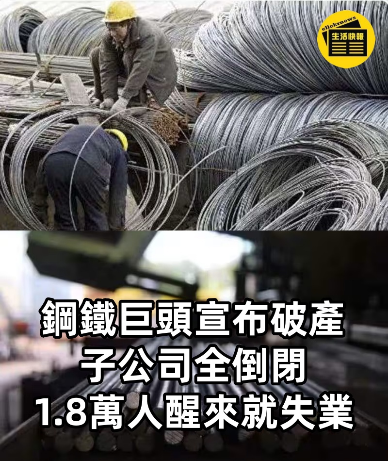 鋼鐵巨頭宣布破產!! 子公司全倒閉「1.8萬人醒來就失業」