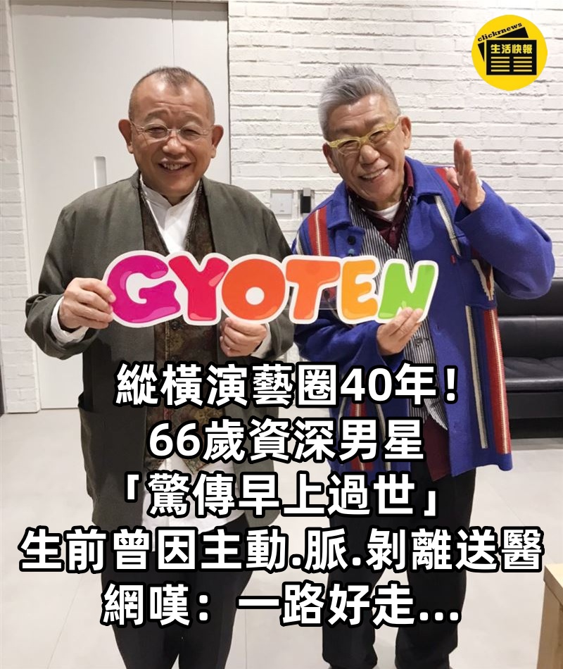 縱橫演藝圈40年! 66歲資深男星「驚傳早上過世」生前曾因「主動脈.剝.離送醫」網嘆:一路好走…