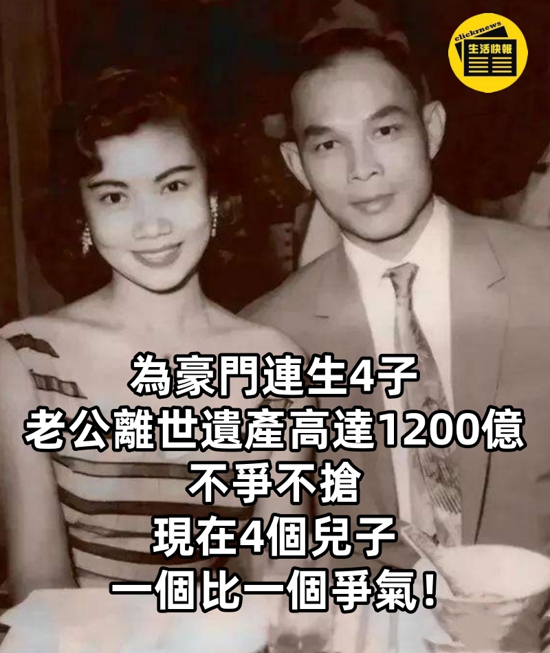 為豪門連生4子,老公離世遺產高達1200億,不爭不搶,現在4個兒子一個比一個爭氣!