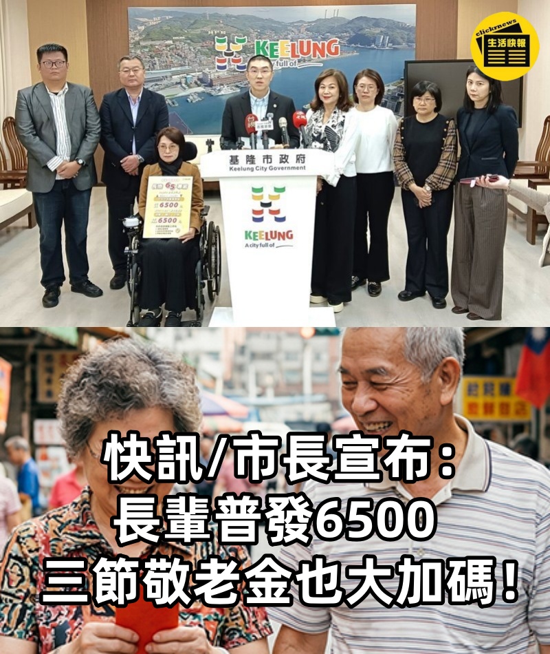 快訊/市長宣布:長輩普發6500、三節敬老金也大加碼!