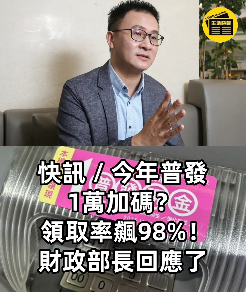 快訊 / 今年「普發1萬」加碼?領取率飆98%!財政部長回應了