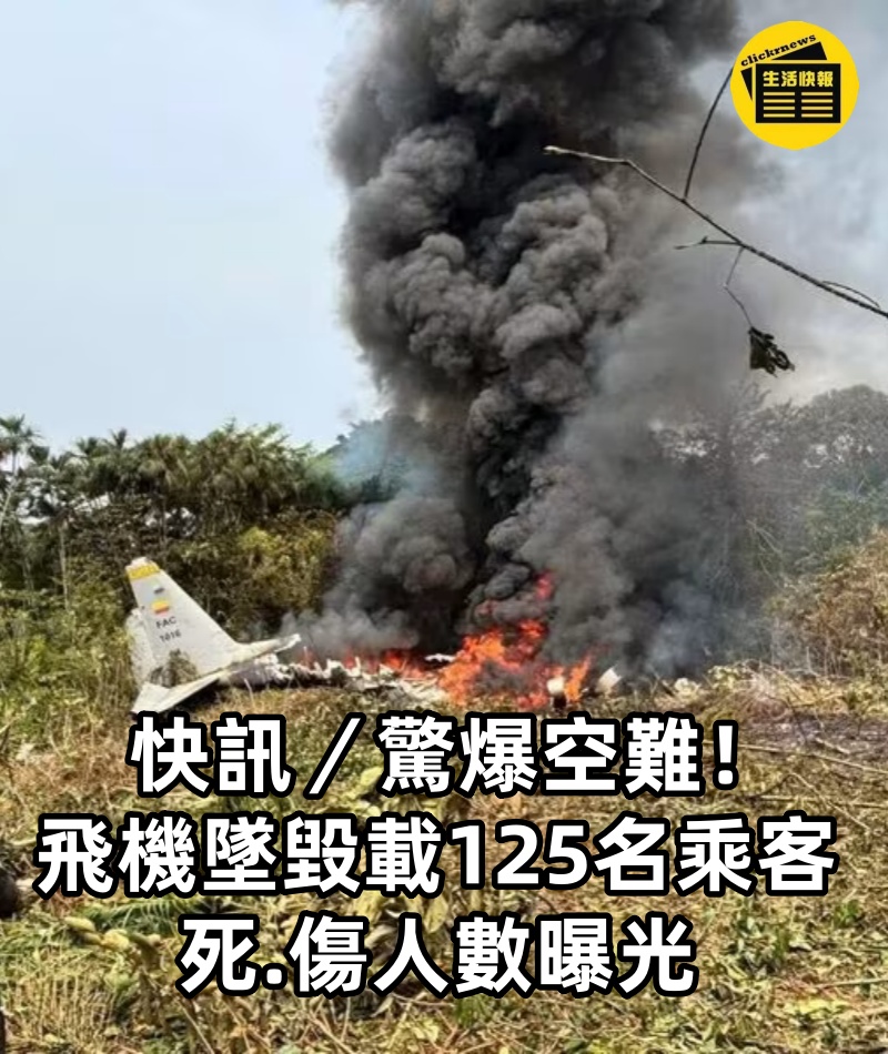 1/4 快訊/驚爆空難!飛機墜毀「載125名乘客」死傷人數曝光 根據《香港01》報導,南美國家哥倫比亞發生嚴重空難悲劇! 該國空軍一架C-130型「大力神」運輸機,於3月23日在西南部普圖馬約省萊吉薩莫港機場準備升空時突然墜毀, 機上共搭載114名乘客及11名機組人員,合計