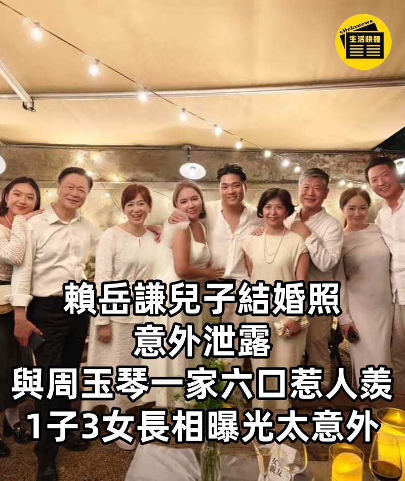 賴岳謙兒子結婚照意外泄露,與周玉琴一家六口惹人羨,1子3女長相曝光太意外