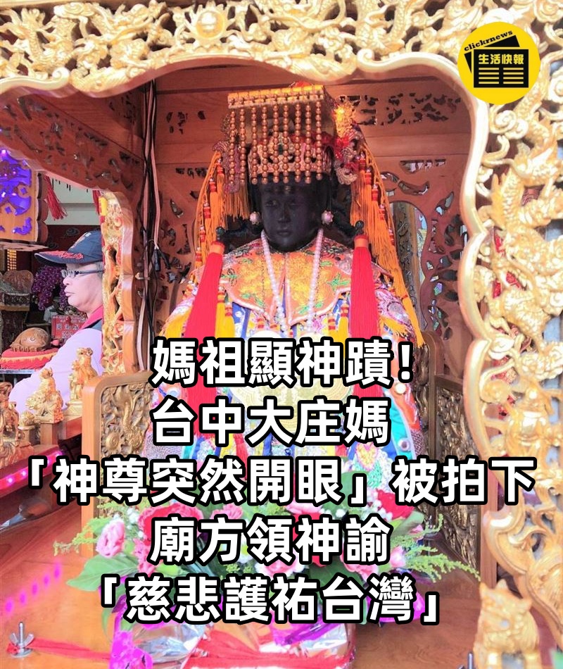 媽祖顯神蹟!台中大庄媽「神尊突然開眼」被拍下!廟方領神諭「慈悲護祐台灣」