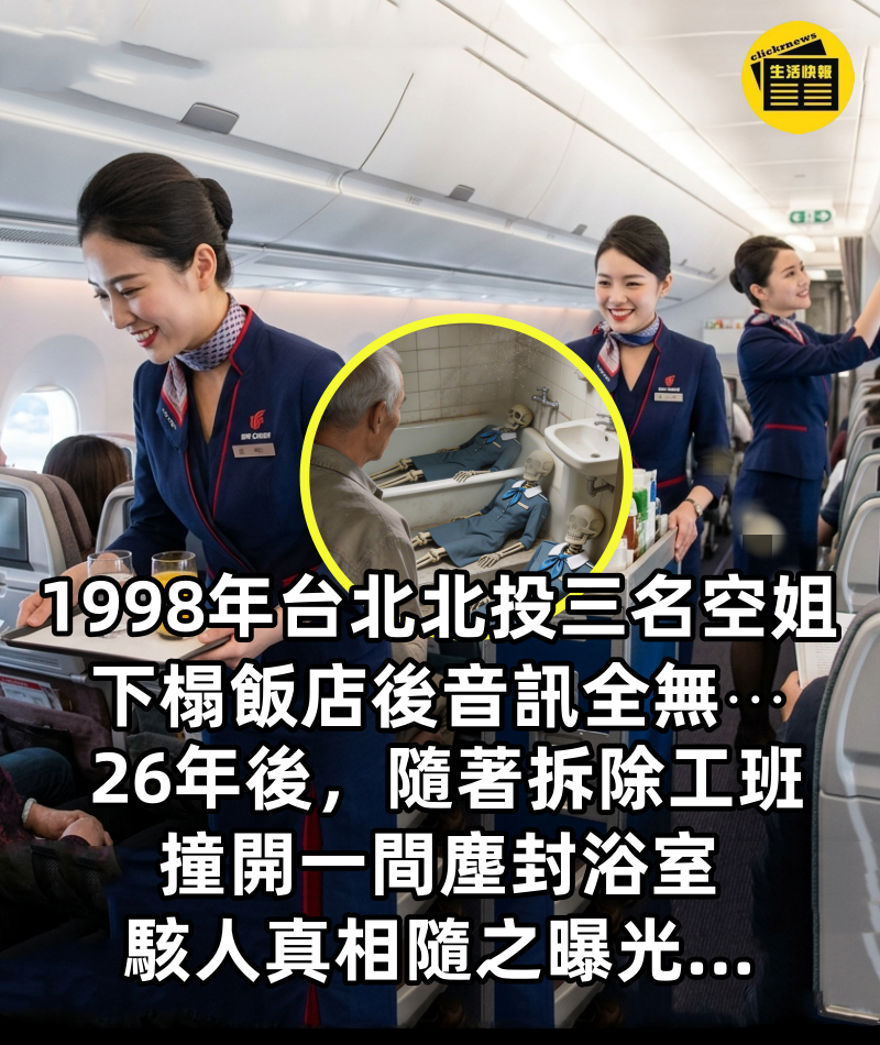 1998年,台北北投三名空姐下榻飯店後音訊全無⋯ 26年後,隨著拆除工班撞開一間塵封浴室,駭人真相隨之曝光...