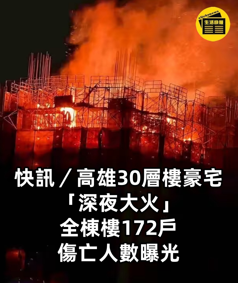 快訊/高雄30層樓豪宅「深夜大火」 全棟樓172戶, 傷亡人數曝光