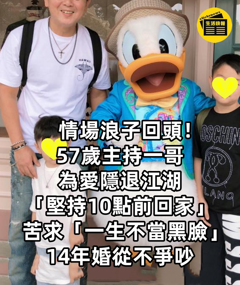 情場浪子回頭!57歲主持一哥為愛隱退江湖「堅持10點前回家」 苦求「一生不當黑臉」14年婚從不爭吵