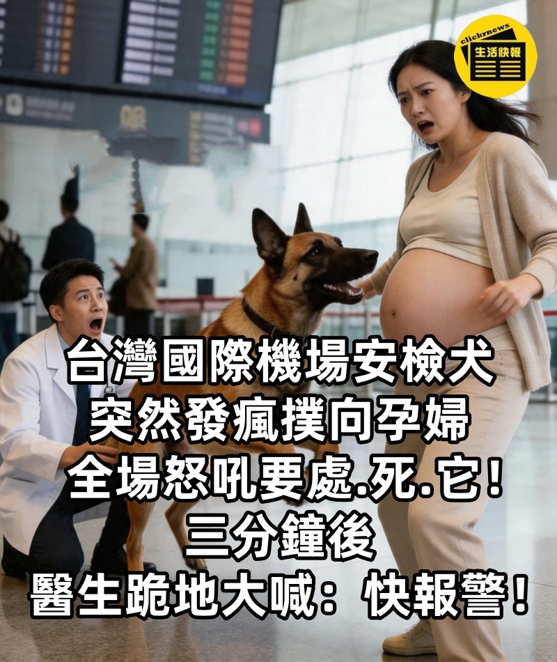 台灣國際機場安檢犬突然發瘋撲向孕婦,全場怒吼要處.死.它!三分鐘後,醫生跪地大喊:快報警!