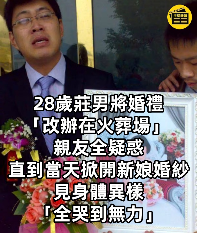 28歲莊男將婚禮「改辦在火葬場」 親友全疑惑,直到當天掀開新娘婚紗,見身體異樣「全哭到無力」....