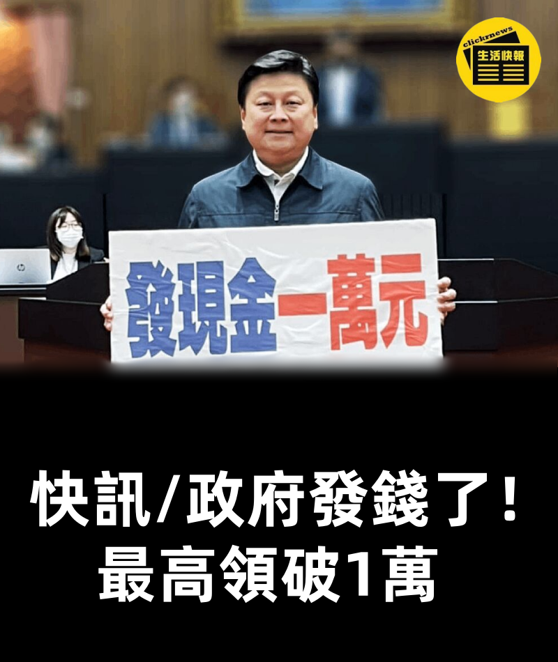 快訊/ 普發現金再一次?立委提「每人補助1萬」政府回應了