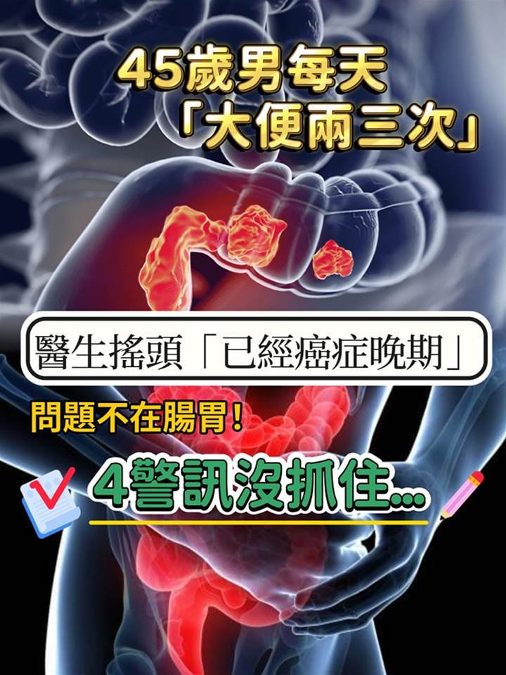 才45歲!他每天「大便兩三次」以為消化好,醫生搖頭「已經癌癥晚期」4異常沒注意