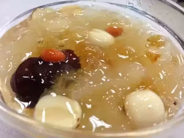 大棗、銀耳(用溫開水發開)、薑片、枸杞、冰糖