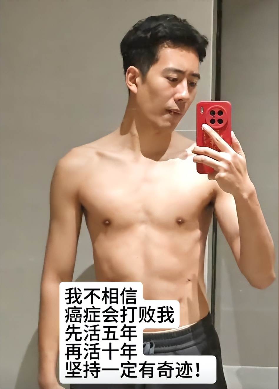 靠著運動他從虛弱瘦小的樣子變成了肌肉男,怎麼看都不像是癌癥患者。