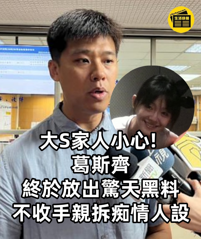 1/4 藝人大S(徐熙媛)已滿一周年,至少(2)日甫於金寶山舉行紀念雕像揭幕儀式,現場親友哀慟、言承淚崩需人攙扶的畫面才剛引發全網鼻酸,不料資深狗仔記者葛斯齊卻於深夜突襲發文,疑似儀式指控大S與其縱向縱場。 此外,葛斯齊更在回復網友時自揭慘判判賠60萬元的財務困局與委屈,火藥味十足。