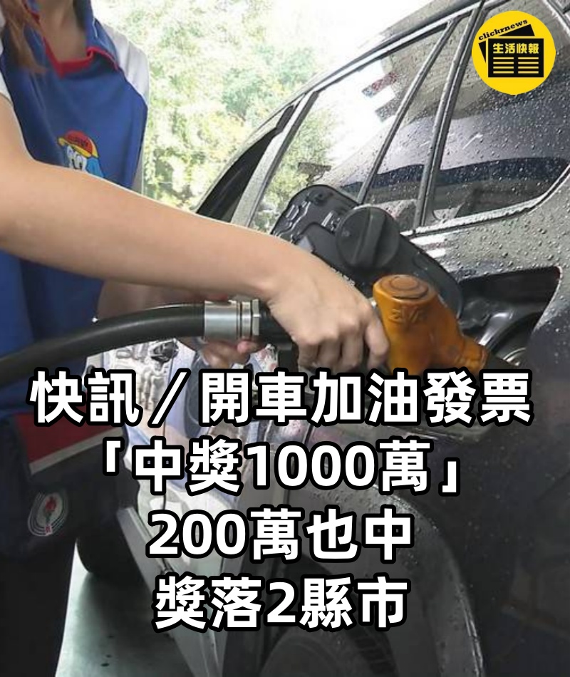 快訊/開車加油發票「中獎1000萬」200萬也中, 獎落2縣市