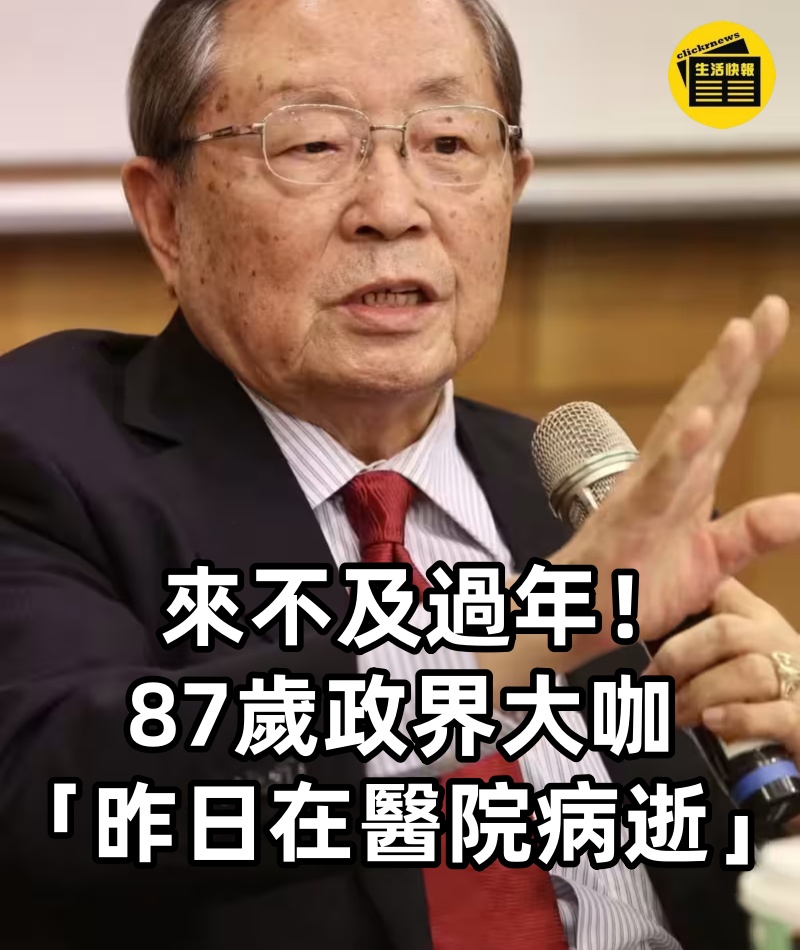 來不及過年!87歲政界大咖「昨日在醫院病逝」