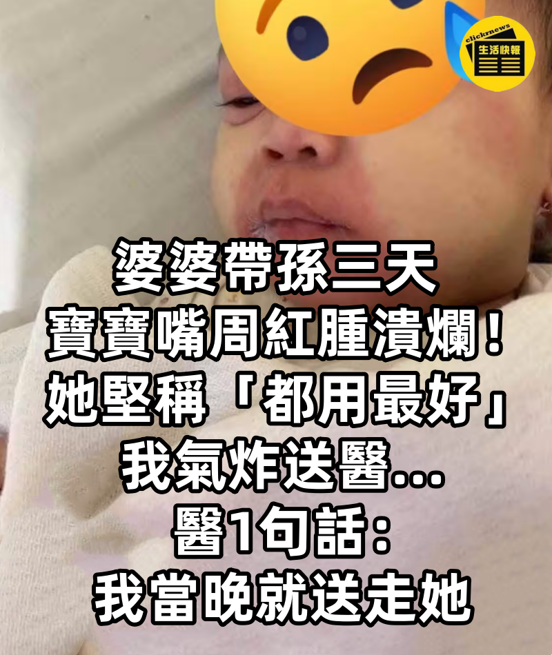 婆婆帶孫三天,寶寶嘴周紅腫潰爛!她堅稱「都用最好」,我氣炸送醫…醫1句話:我當晚就送走她