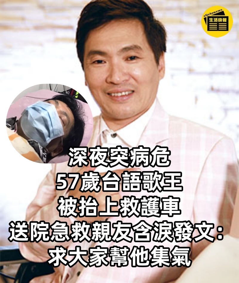 深夜突病危,57歲台語歌王被抬上救護車,送院急救親友含淚發文: 求大家幫他集氣