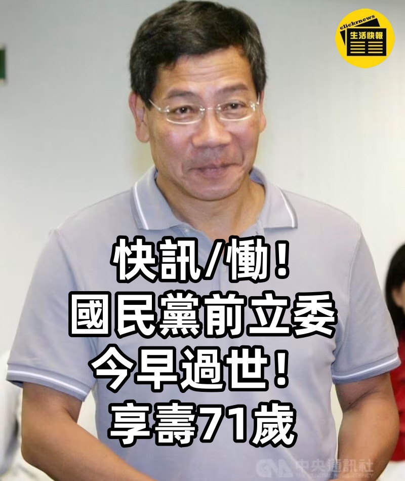 快訊/慟! 國民黨前立委今早過世! 享壽71歲