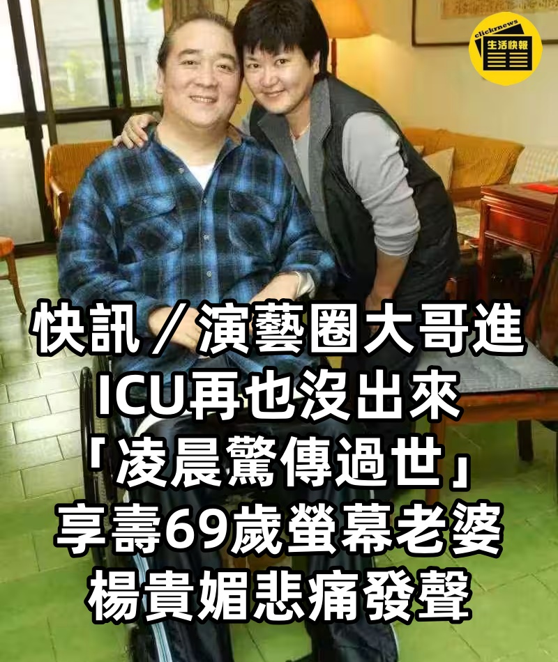 快訊/演藝圈大哥進ICU再也沒出來「凌晨驚傳過世」享壽69歲「螢幕老婆」 楊貴媚悲痛發聲