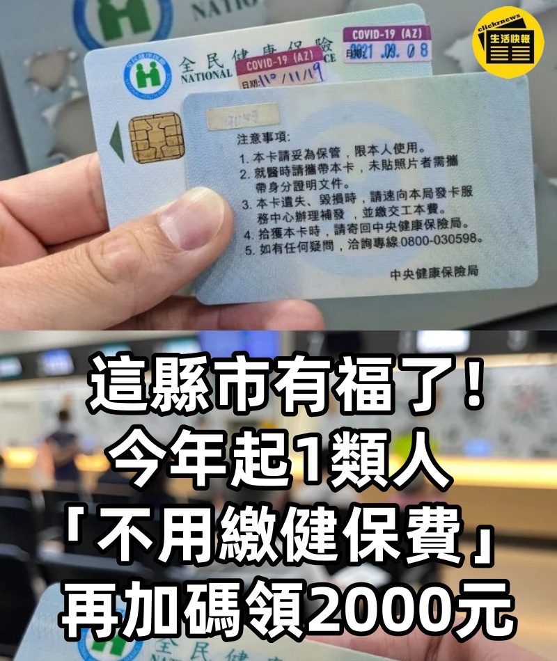 這縣市有福了! 今年起1類人「不用繳健保費」 再加碼領2000元