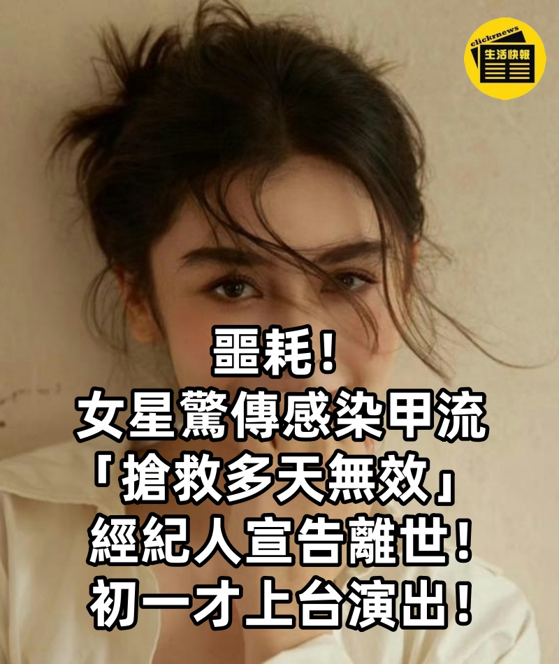 噩耗! 女星驚傳感染甲流「搶救多天無效」經紀人宣告離世 ! 初一才上台演出